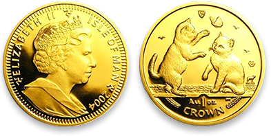 K24 キャット金貨 (マン島) 重さ 1oz/1オンス/31.1g 買取価格 84万円 金貨の概要 こちらの金貨は、キュートなネコと、 エリザベス2世の肖像が描かれた、 K24の金貨となります。 キャット金貨は、イギリス王室領の マン島自治政府が1988年から2012年まで 発行されていた金貨で、毎年デザインが 変わる為、コレクション性が高い金貨です。